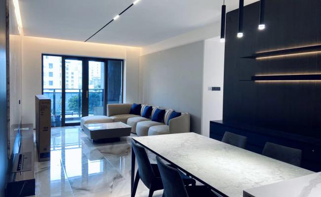 業主是中年夫妻習慣了暖色的空間。希望有一個度假彰顯個性的休閑環境。本案整體色調以黑色為主。彰顯業主的個性。同時與窗外的江景形成對比。突出室外的秀麗風景
