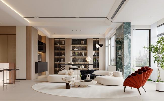 整體空間的布局考慮到了實用性與美感的完美結合。 客廳的中式弧頂設計有效地提升了空間的高度感。同時,通過其半吊頂的巧妙處理,也使得整體空間變得更加寬敞明亮,中式弧頂讓客廳的上方空間顯得更為開闊,消除了可能存在的壓抑感。 半吊頂的設計則充分利用了空間結構,它在不占用過多空間的情況下,合理地調整了視覺效果,讓整個客廳看上去比實際面積更顯寬敞。