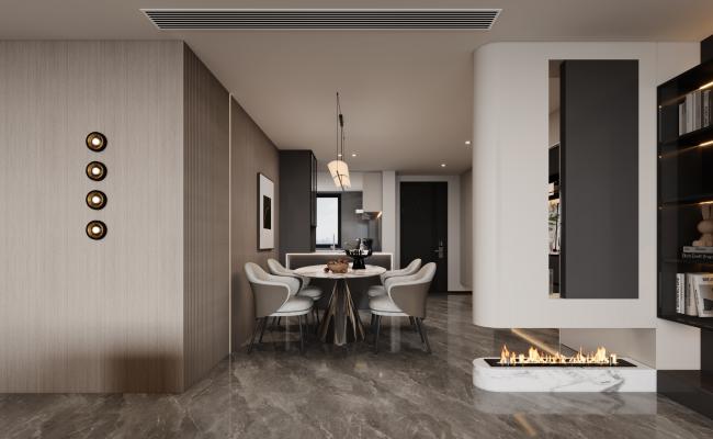 室內設計主打現代意式輕奢風格,選用意大利冰玉/銀灰石材、皮革等高品質材質,線條流暢簡潔,同時融入寶格麗藍寶石會所的藝術靈感,兼顧奢華質感與居住舒適度.