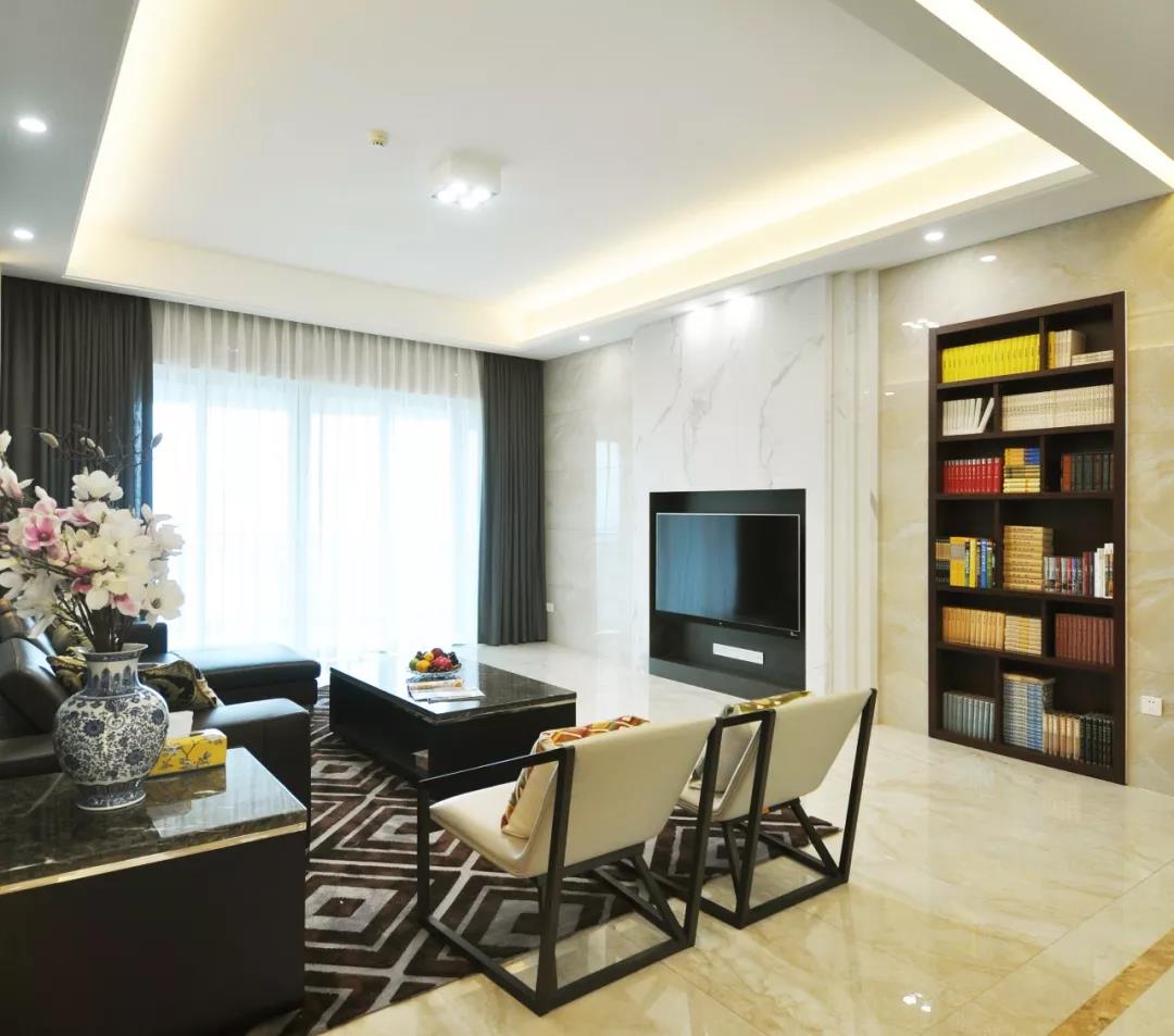今天這個案例的業主,是一對來自著名高校里的教授和讀過博士后的高級職務人員;兒子正念高中,是一個知識分子家庭。所以,本案選擇以“書”為主要設計語言。從城市的喧鬧中抽身而退,尋求書香氣息的涵養,讓這個空間有了“自然與心靈”之間溫文爾雅的對話。