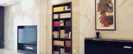 稍加利用電視墻這個極具潛力的空間,別出心栽地設計一個書柜,