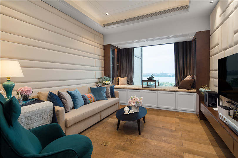 位于客廳另外一側的客房與其他臥室區(qū)分開來,滿足娛樂,品茶,小憩,甚至偶爾的朋友留宿,窗外的江景儼然是房間里一幅渾然天成的裝飾畫。