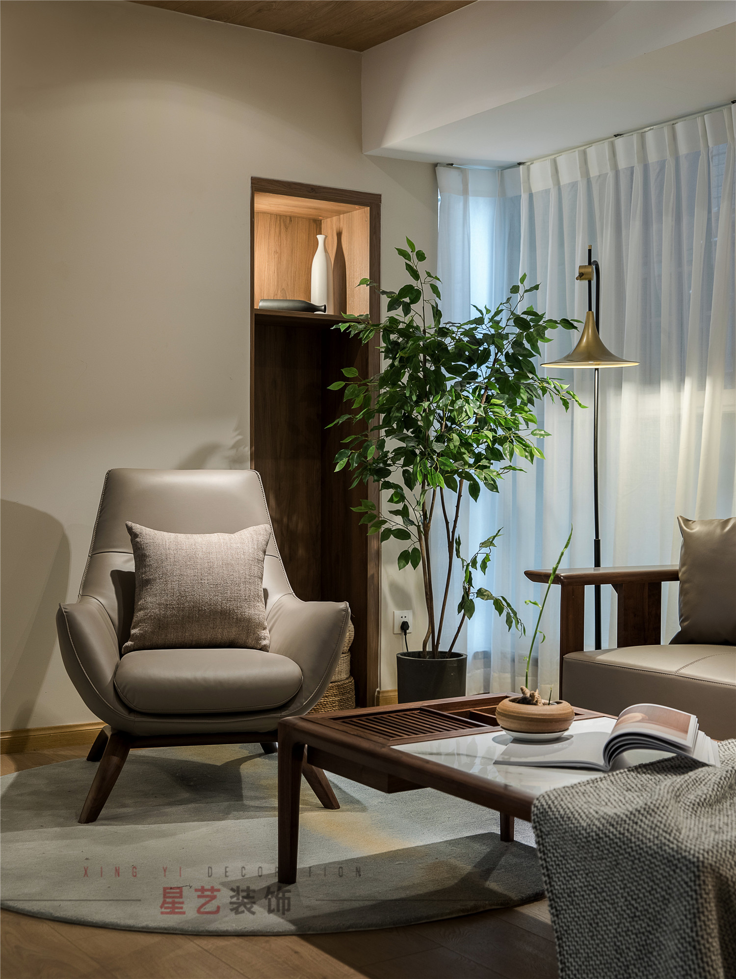 增添綠植讓客廳更加清新自然,結合角落處精心設計的小擺件,形成了絕美的藝術畫卷。
