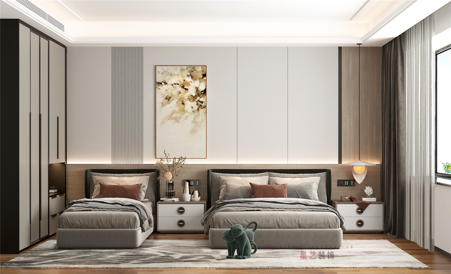 二樓的臥室設(shè)置兩張雙人床,平常可以作為備用臥室,方便有客人或者親戚留宿。