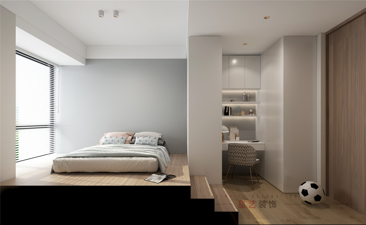 木制紋理地板搭配棉麻風(fēng)格的床上用品