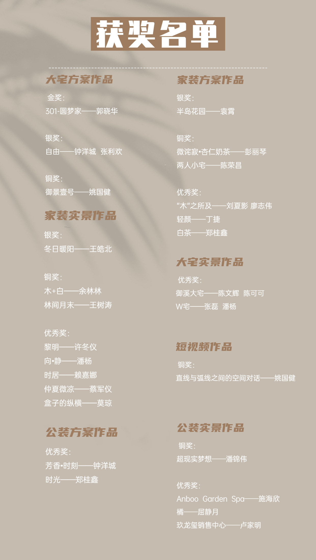 據(jù)了解,本次大賽2022年5月1日啟動(dòng),征稿時(shí)間截止到6月30日。參賽作品分公共項(xiàng)目和住宅項(xiàng)目?jī)纱箢悺C恳豁?xiàng)設(shè)有金獎(jiǎng)、銀獎(jiǎng)、銅獎(jiǎng)和優(yōu)秀獎(jiǎng)。其中,本屆星藝杯還特設(shè)“大宅項(xiàng)目獎(jiǎng)”和“設(shè)計(jì)短視頻作品”,以鼓勵(lì)和加強(qiáng)設(shè)計(jì)師的大宅項(xiàng)目設(shè)計(jì)能力,力推大宅設(shè)計(jì),見證設(shè)計(jì)新傳播,賦能設(shè)計(jì)未來。