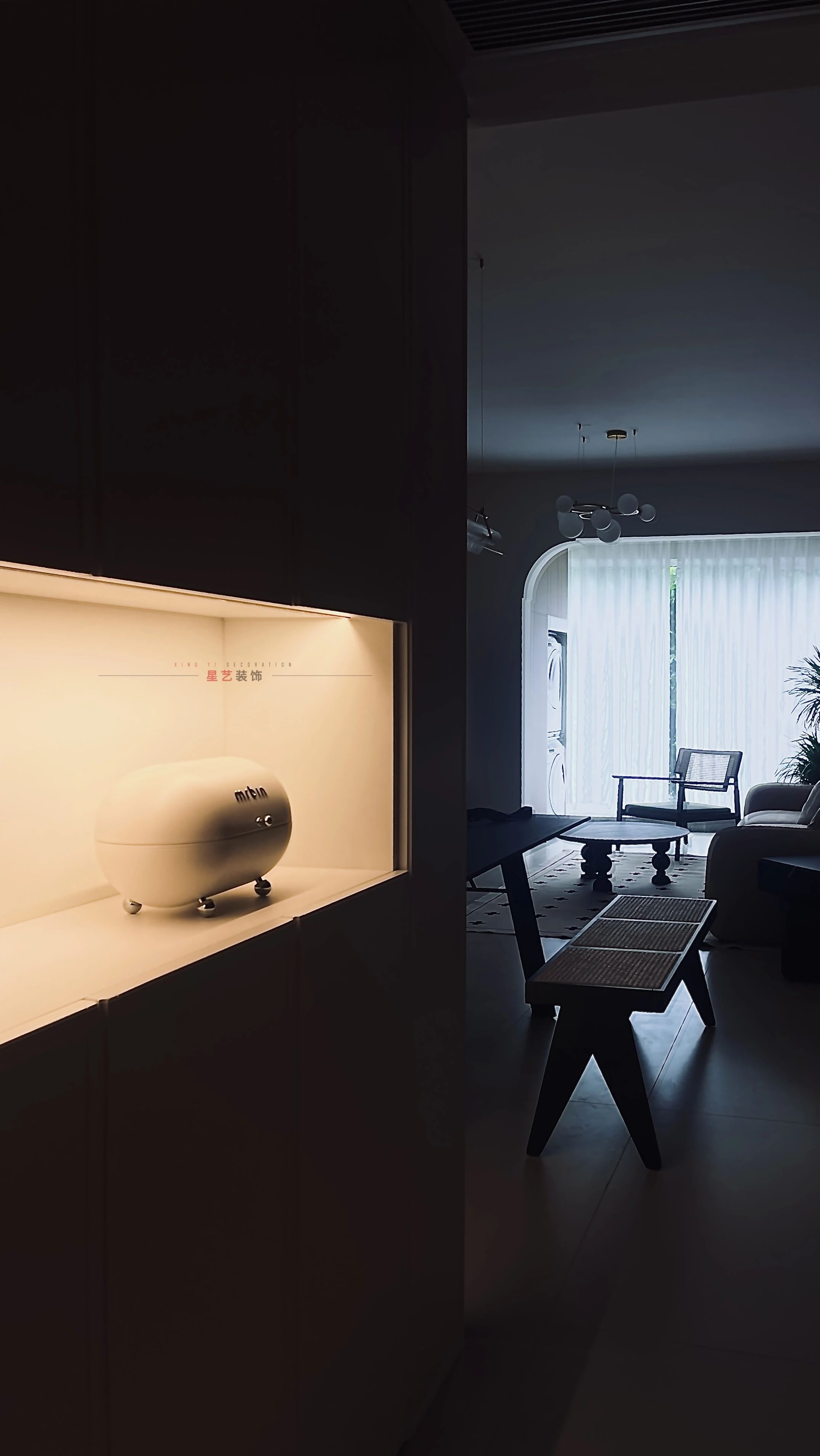 玄關(guān)柜上暖黃色的燈,與窗外模糊的暮色形成對比,這是一天最溫柔的時(shí)刻,光讓生活浮起來了。