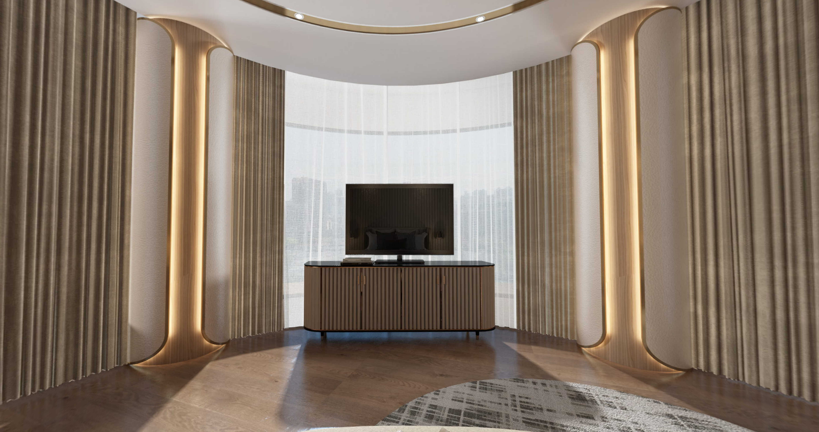 全屋以原木風(fēng)為主,胡桃木色的墻板搭配奢石巖板,同色系的組合式廳柜+L型沙發(fā),將生活場(chǎng)景娓娓道來。