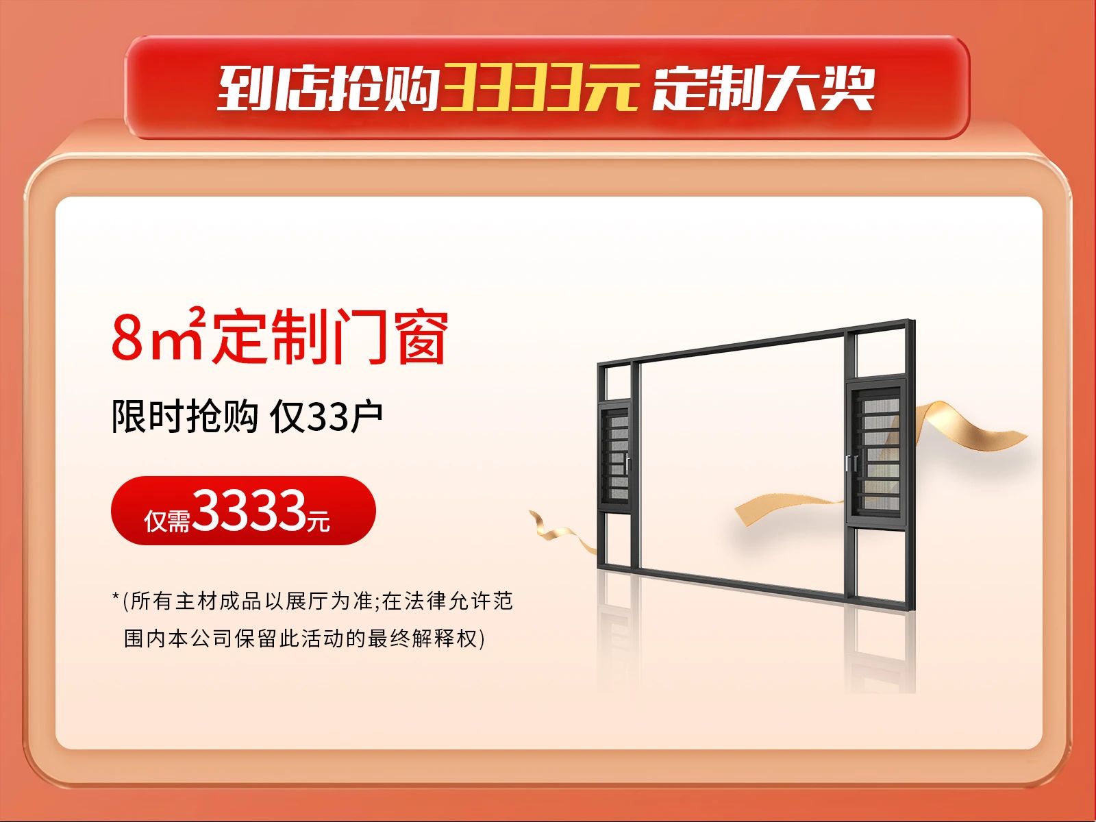 為慶祝星藝33周年活動,現(xiàn)推出3333元搶購8㎡定制門窗,限時限量,有裝修需求的小伙伴抓緊時間啦!